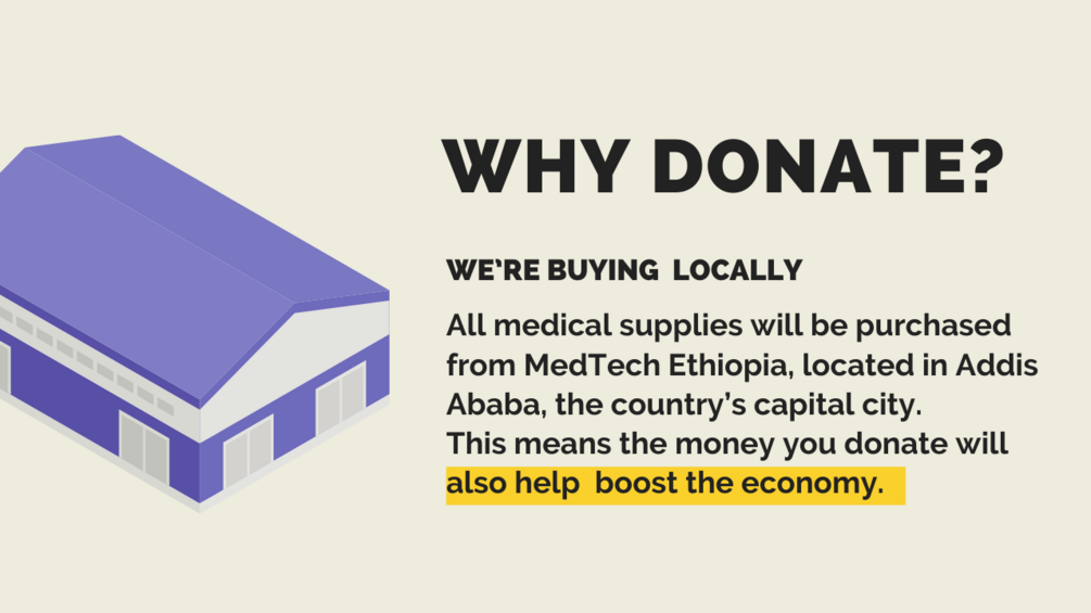 All medical supplies will be purchased from MedTech Ethiopia, located in Addis Ababa, the country’s capital city. This means the money you donate will also help boost the economy.